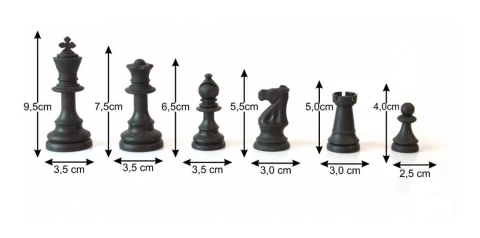 Peças para jogo de xadrez modelo oficial, em plástico maciço de alto impacto, conjunto completo contendo 32pçs, sendo 16pçs pretas e 16pçs brancas, são produzidas com material atóxico de ótima qualidade e resistência, por ser feito em plástico maciço ele é muito resistente a quedas e fica com o peso ideal substituindo o chumbo que é um material tóxico, este jogo vai embalado em uma caixa de papelão personalizada, ideal para jogar em torneios medida da caixa – 26x6x13cm