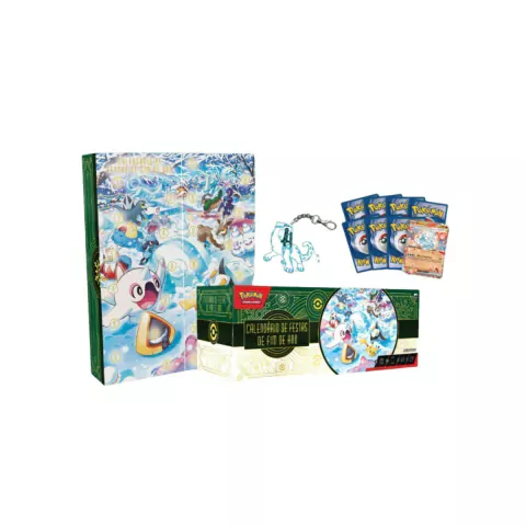 Pela primeira vez, o Calendário de Festas de Fim de Ano vem para o Brasil! Celebre 25 dias de surpresas, de pacotes de booster a moedas de Pokémon, todos os dias há uma surpresa Pokémon diferente para abrir.A ideia desse produto é criar um clima festivo de fim de ano, de forma antecipada. Esse item é um belo presente para qualquer Treinador Pokémon ou Colecionador Pokémon, contendo cartas com estampas exclusivas e itens exclusivos desse evento. Por se tratar de um calendário, ele tem vários números e cada dia, você destaca uma área do calendário e ganha a recompensa presente naquele espaço. Todo dia, fica sendo dia de presente!